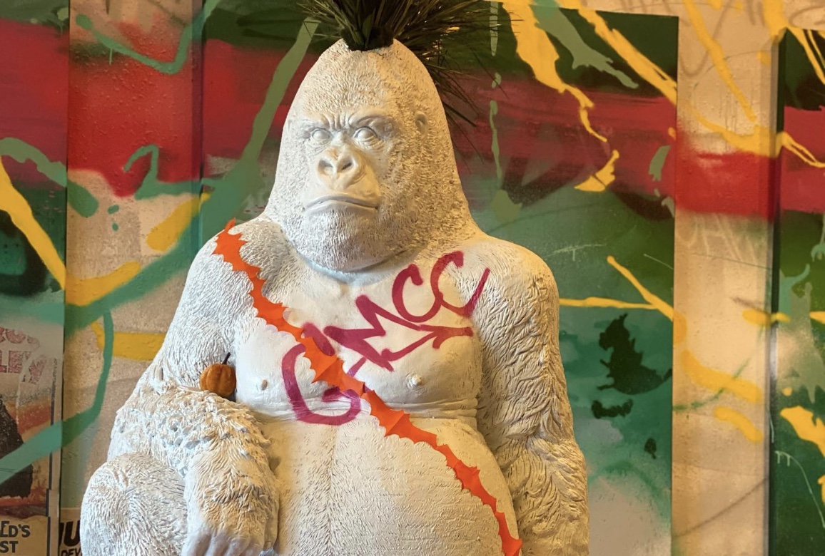 The shop’s centerpiece is a six-foot-tall graffitied banana placed right at the checkout counter. Lush green plants drape over product shelves and on the ceiling. A giant gorilla planter sits across from a painting of a red-eyed Mona Lisa. All together, one can’t help but feel like they’re walking through a modern art gallery in the middle of a jungle.