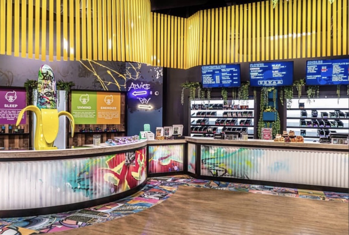 Grass Monkey’s uniquely weird yet cohesive look is all made possible by its uber-talented creative director Valentino Mikalef, who is himself a renowned street artist. Grass Monkey’s one-of-a-kind interior made it one of Architectural Digest’s Most Stylish Cannabis Dispensaries in 2021.