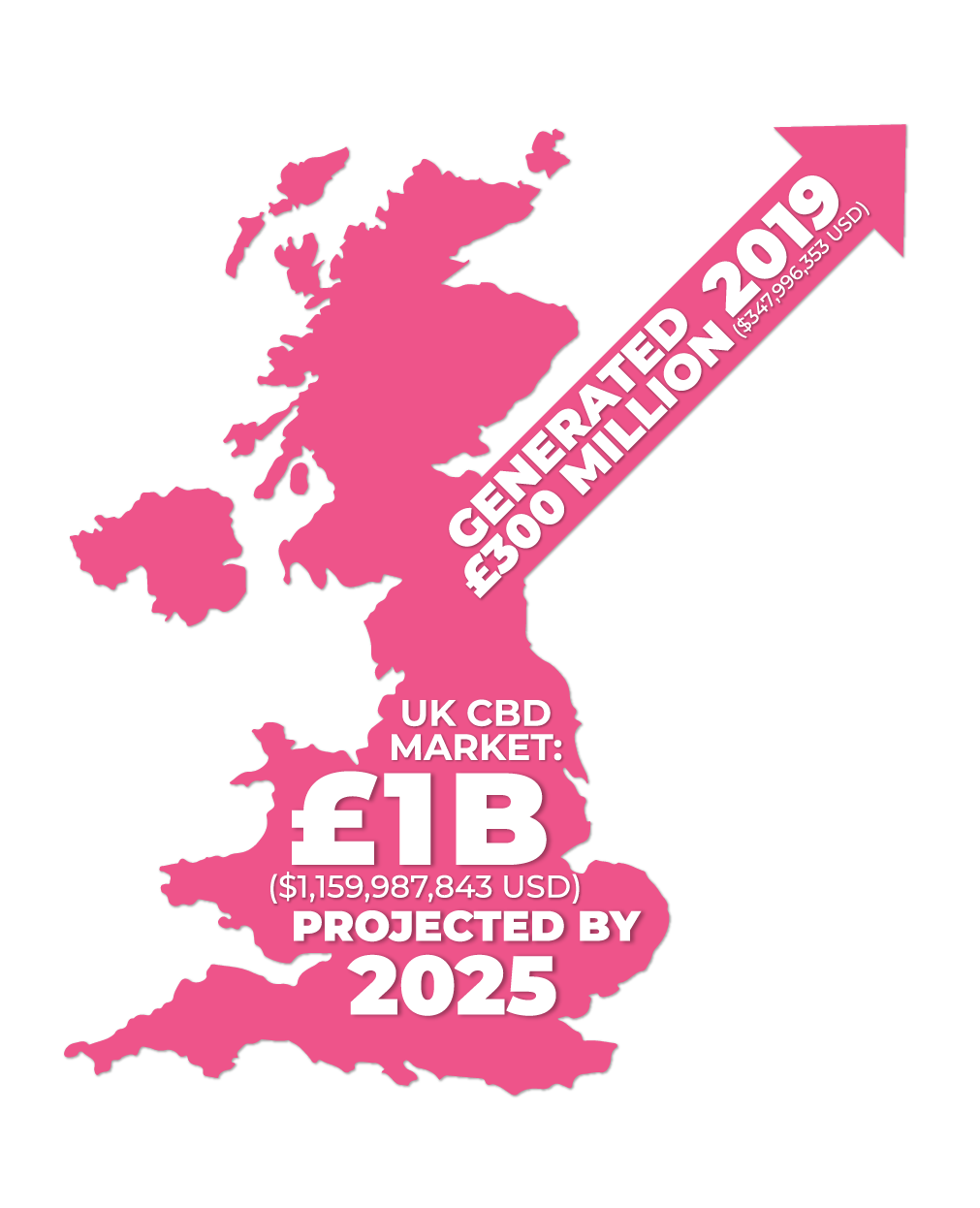 The U.K. CBD market is one of the largest in Europe. In 2019 the legal CBD industry in the U.K. was worth an estimated £300 million ($347,996,353.00 USD). Today in 2021, that number has expanded to achieve an impressive £630 million ($730,792,341.30 USD), and projections put it on track to achieve the £1 billion ($1,159,987,843.33 USD) mark by as early as 2025.