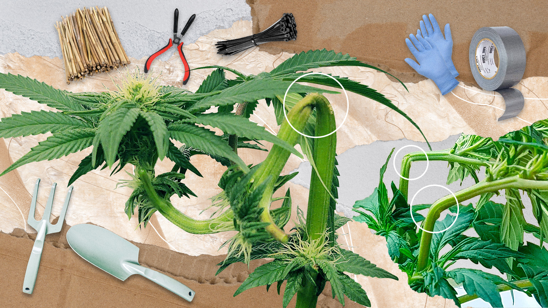 - Support The Bent Stems — If you need to support the bent stems in their new position, you can use ties, stakes, or plant tape. This will help your cannabis plant maintain its structure until it finally heals and strengthens.
